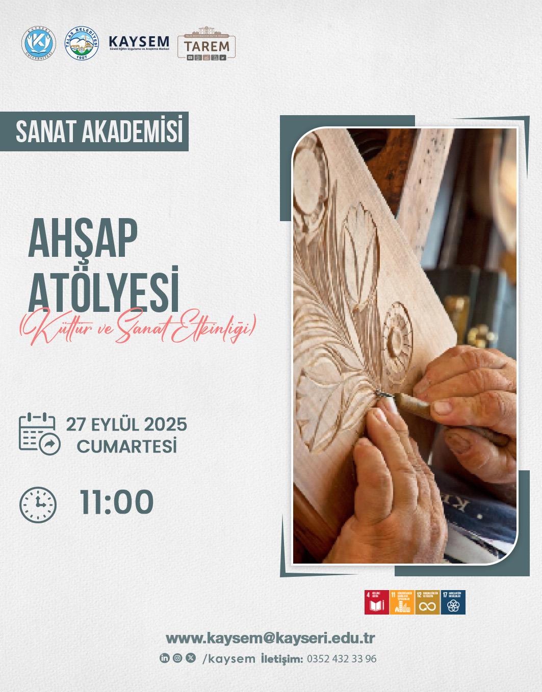 Kayseri Üniversitesi ve Talas Belediyesi iş birliğiyle kurulan Talas Restorasyon Eğitim Merkezi (TAREM) aracılığıyla kültürel mirasımızı yaşatmaya devam ediyoruz. KAYSEM tarafından koordine edilen bu atölyeler, ahşap ve taş işlemeciliği kültür sanat ahşap etkinliğimiz için tıklayınız.