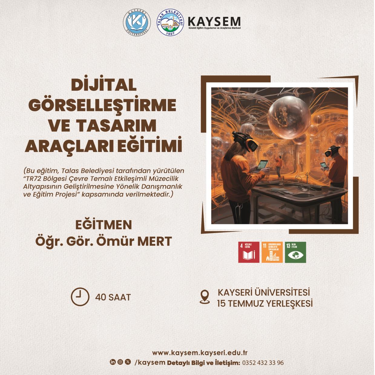 Talas Belediyesi’nin yürüttüğü “TR72 Bölgesi Çevre Temalı Etkileşimli Müzecilik Altyapısının Geliştirilmesine Yönelik Danışmanlık ve Eğitim Projesi” kapsamında, KAYSEM koordinasyonunda düzenlenen eğitimlerle dijital tasarım alanındaki yenilikleri keşfediyoruz.