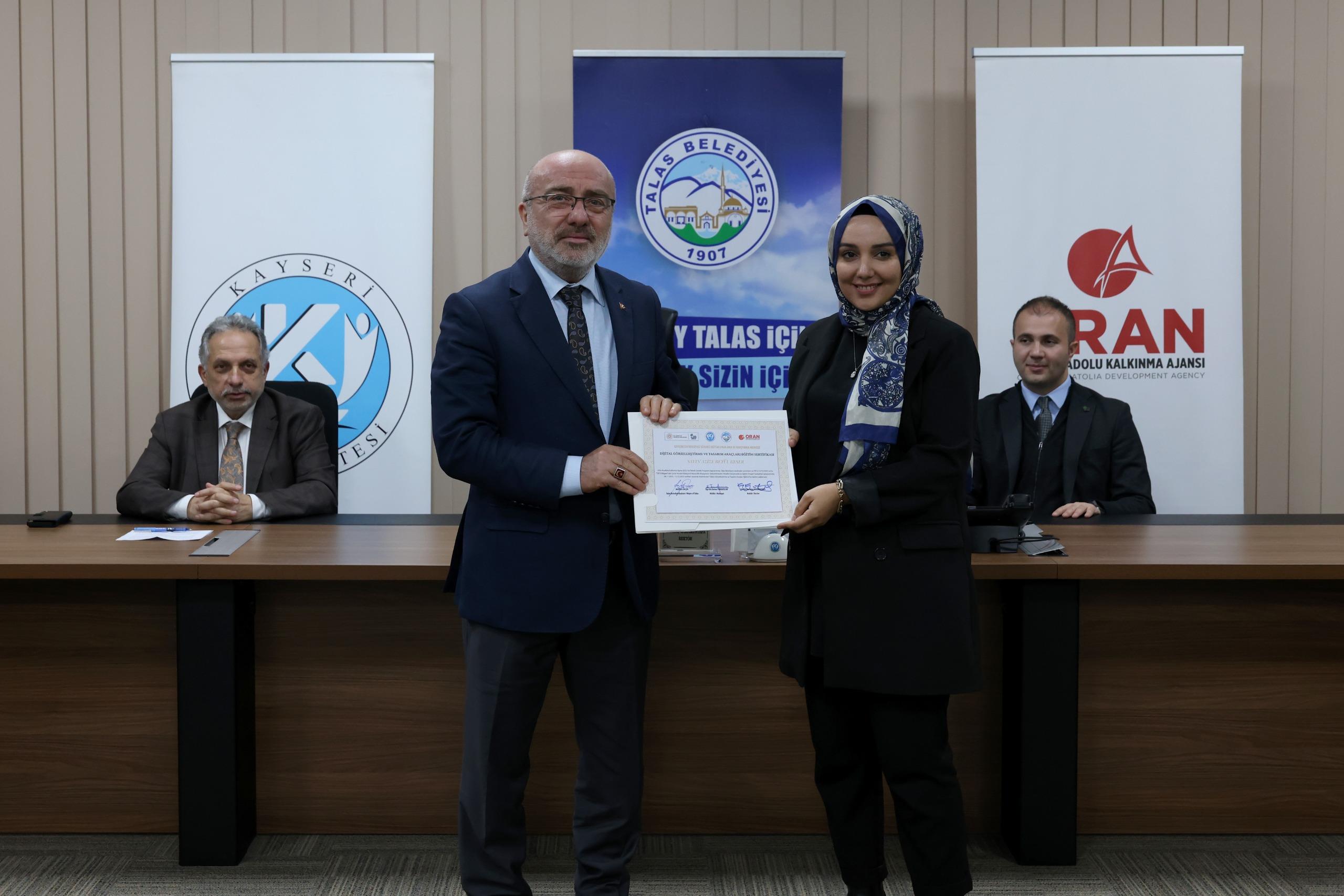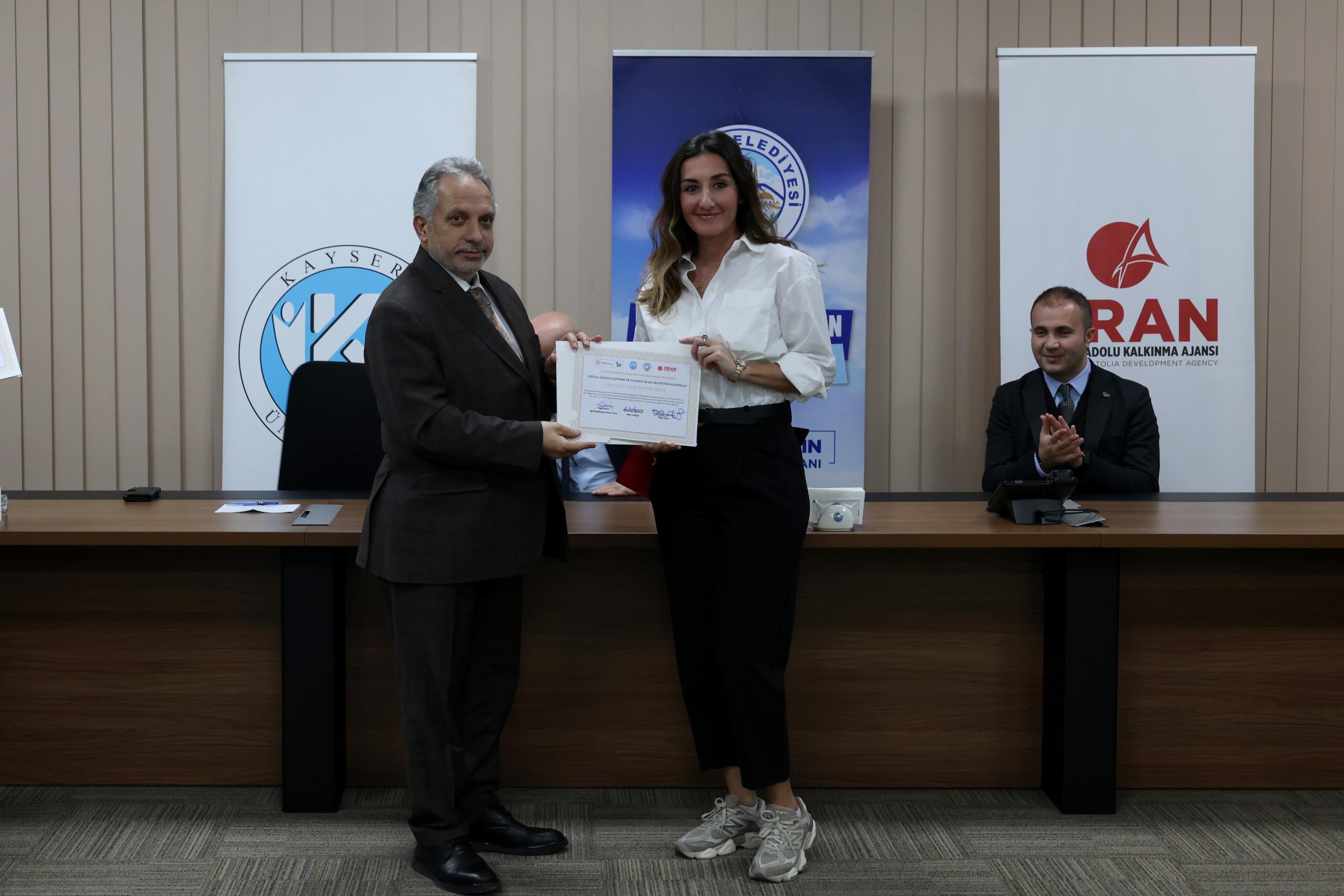 Eğitim programının sonunda düzenlenen sertifika töreni, Kayseri Üniversitesi'nin bölgesel kalkınma odaklı misyonu, disiplinler arası iş birliği yaklaşımı ve nitelikli insan kaynağı geliştirme hedefleri ile yüksek düzeyde uyum gösterdi.