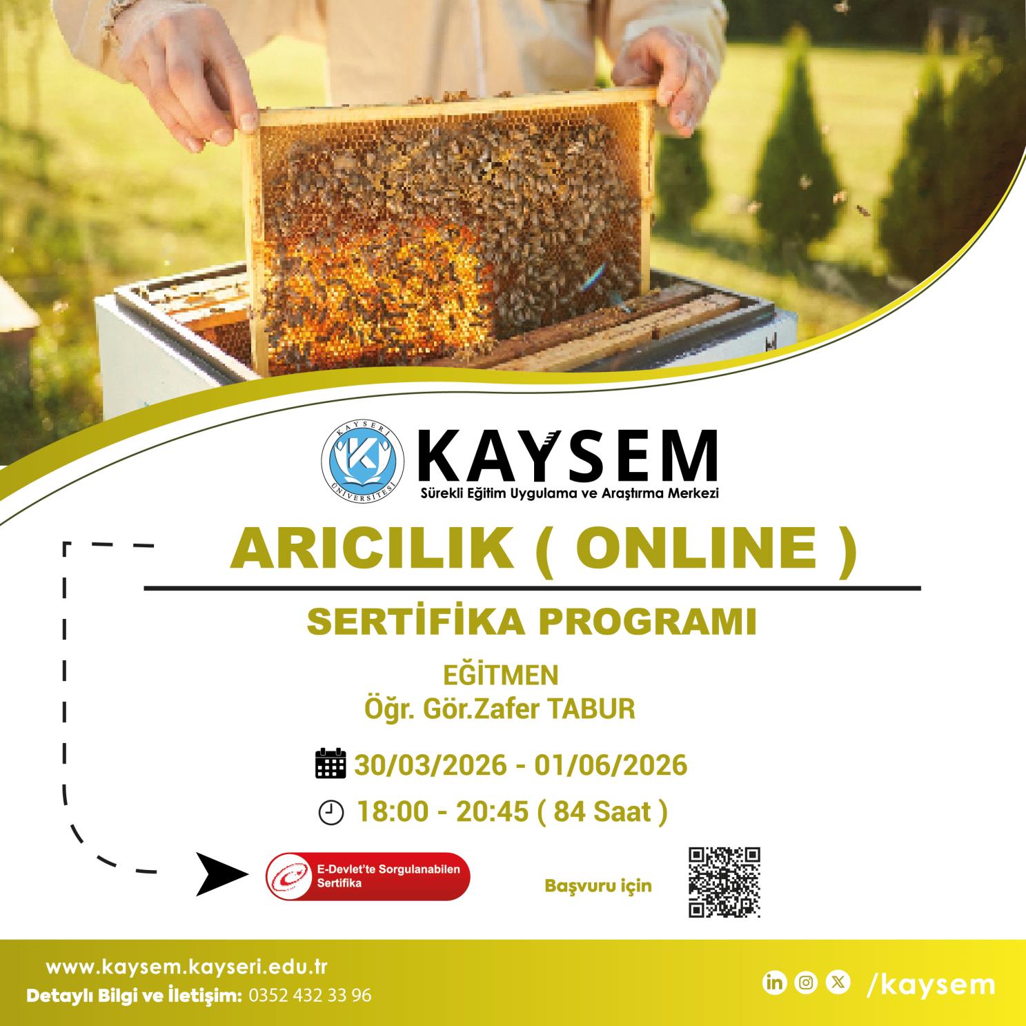 Kayseri Üniversitesi Sürekli Eğitim Uygulama ve Araştırma Merkezi (KAYSEM) tarafından düzenlenen ARICILIK EĞİTİMİ SERTİFİKA PROGRAMI (ONLINE ) başvuruları başlamıştır.