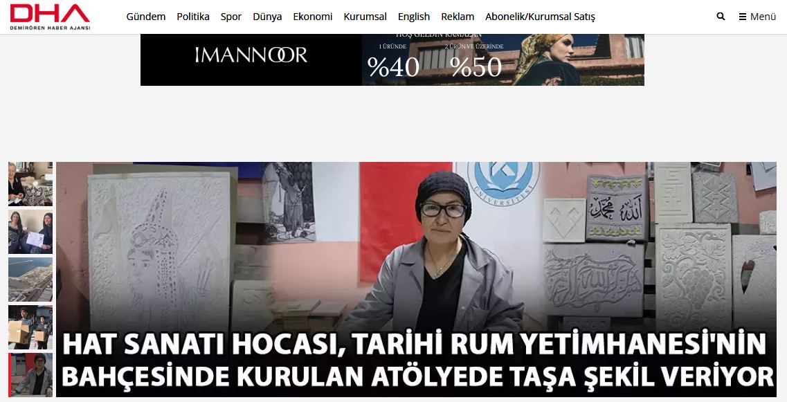 Talas ilçesi Zincidere Mahallesi'nde 119 yıl önce yapılan Sion Yetimhanesi'nin (Köy Muallim Mektebi) bahçesindeki atölyelerde taş, ahşap ve restorasyon ustası yetiştirilmesine yönelik kurs veriliyor. Talas Belediyesi ve Kayseri Üniversitesi (KAYÜ) iş birliğiyle 2 yıl önce hizmete açılan Talas Restorasyon Eğitim Merkezi'nin (TAREM) ustaları, 2025'te Kültür ve Turizm Bakanlığı tarafından verilen 'Somut Olmayan Kültürel Miras Taşıyıcıları' kartını almaya hak kazanırken, kursiyerler de kendi alanlarında usta öğretici oluyor. İlçede bir halk eğitim merkezinde hat sanatı hocası olarak görev yapan Bircan Ayata, tarihi yetimhanenin bahçesindeki atölyede yer alan taş işlemeciliği kursuna internetten gördüğü ilan sonrası katılmaya karar verdi.