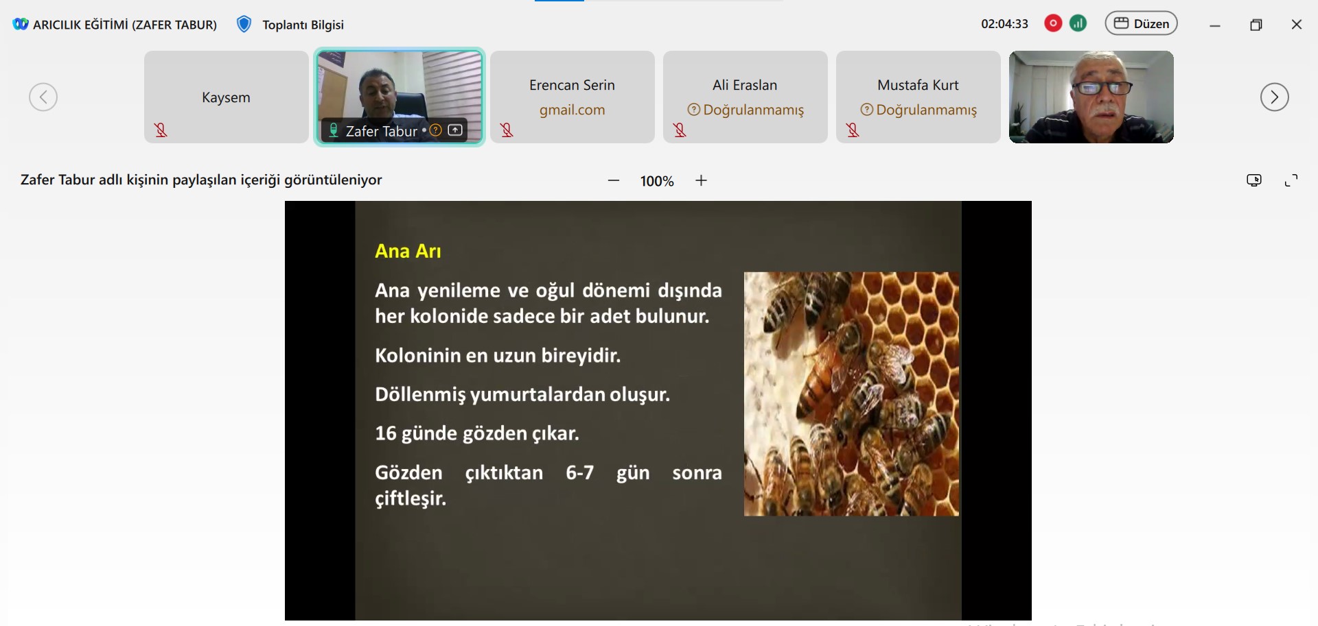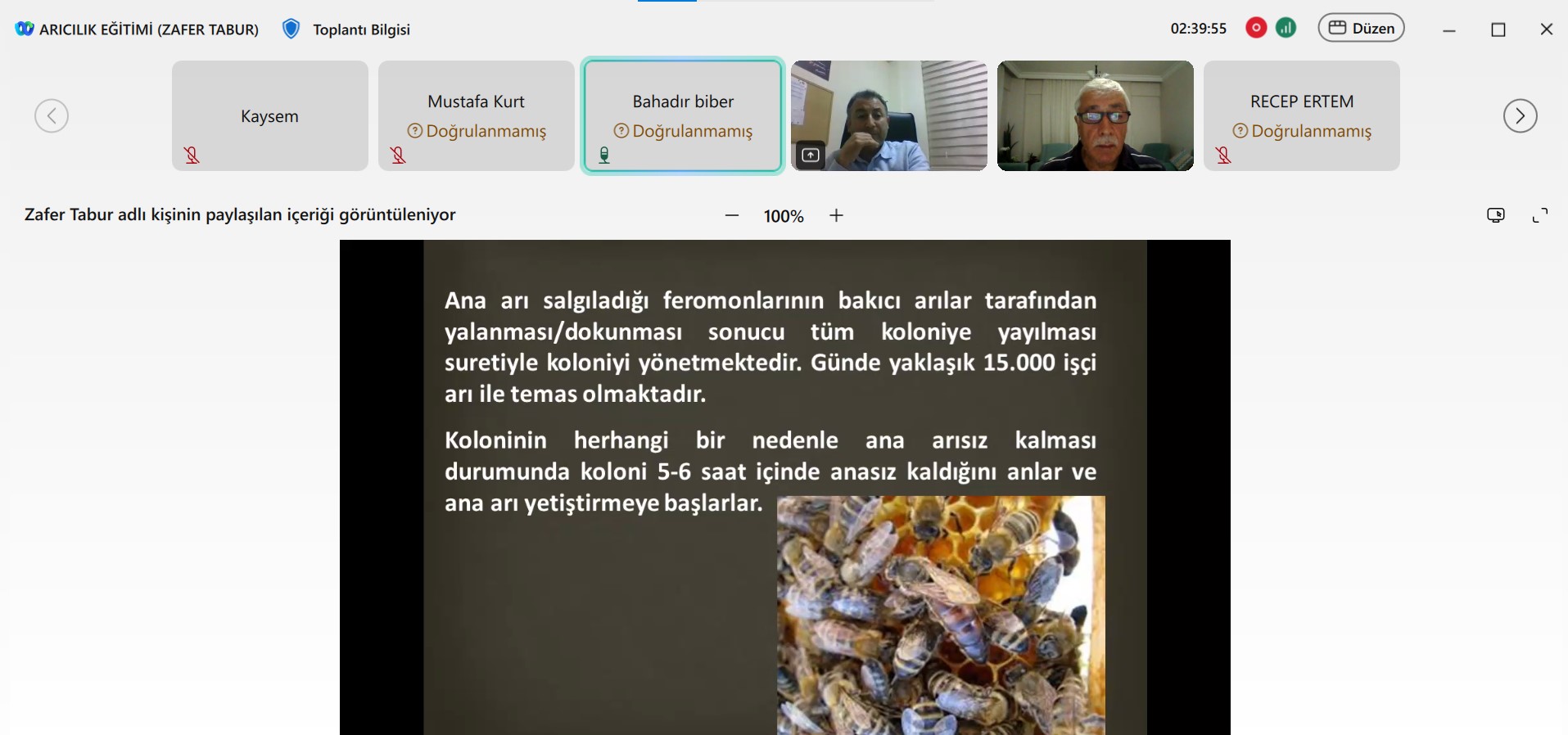 Arıcılığa ilgi duyan katılımcıların yoğun ilgi gösterdiği programda; arı yetiştiriciliği, kovan yönetimi, bal üretimi ve arı hastalıkları gibi konular işleniyor. Online olarak sürdürülen eğitim sonunda katılımcılara sertifika verilecek.